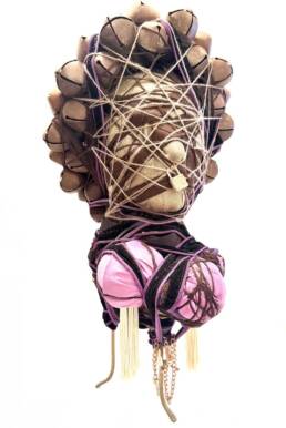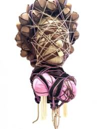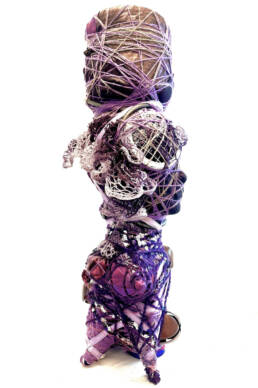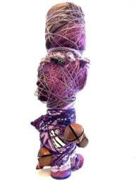 Kristin Meyers’ sculptural process of “binding” found objects as figurative sculpture is informed by her Calabrian-Italian folk heritage. In the tradition, binding is used as a method for transferring energy. Meyers, who has studied vast categories of energy systems, collects found objects based on their perceived energies and the residue of human imprint left in them. She employs a unique process of “fermentation,” during which she bundles groups of objects for a long period of time, allowing their energies to meld. After fermenting, she builds a new body, balancing and then wrapping the objects. This is a way of creating a new being.